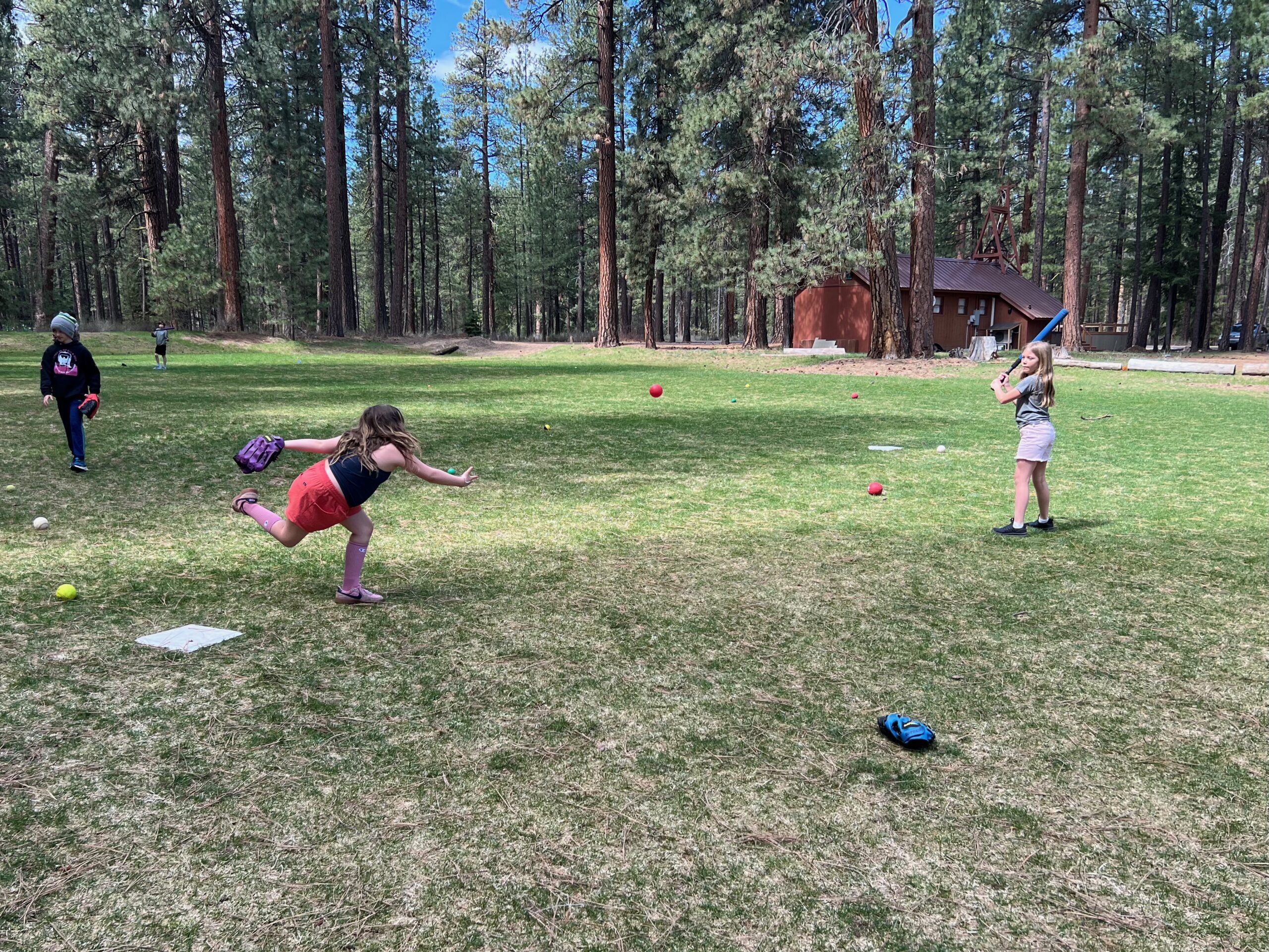 In P.E. class we have been playing baseball. Yesterday all 3 groups got to practice hitting and fielding out in the field. We are learning some of the basic rules to allow us to play some baseball and kickball games in the coming weeks.